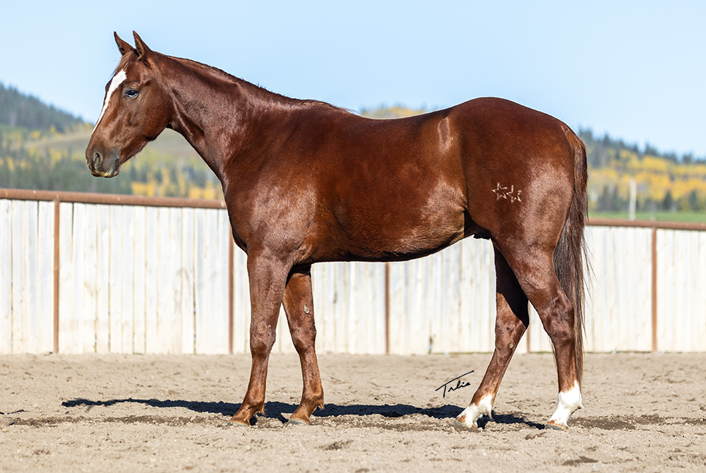 Known for his impeccable performance in both cutting and cow horse events. He has passed down his natural cow sense, athleticism, and competitive spirit to Nine Lives, making him an outstanding prospect for both breeding and competition.